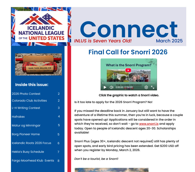 Spring 2026 Connect Newsletter is Available Now! In a little more than a month, Iceland will celebrate the beginning of summer! Here in North America, we’re still thinking about Spring…
